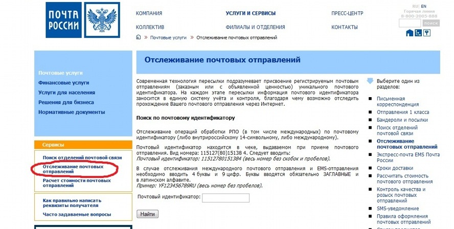 Для этого на главной странице сайта необходимо выбрать соответствующую компанию, название которой должно быть указано на почтовом извещении, и в нужном поле ввести номер почтового идентификатора, который также указывается в извещении.